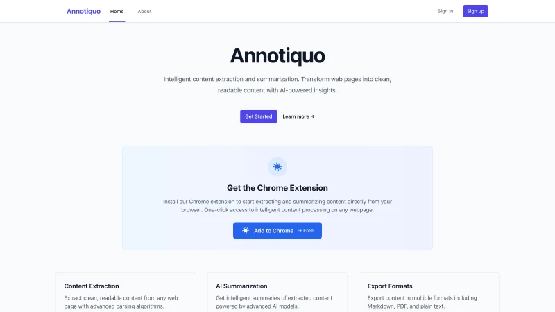 Estrazione e sintesi intelligente dei contenuti. Trasforma le pagine web in contenuti puliti e leggibili con approfondimenti basati sull’AI.