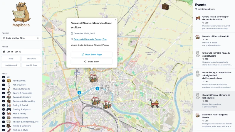 Un sito per trovare eventi locali in tutta Europa. Un motore di ricerca che colloca eventi su una mappa.