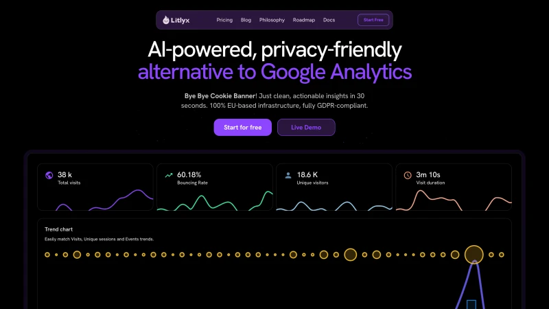 Litlyx ti aiuta a capire come va il tuo sito o la tua web app, senza violare la privacy dei tuoi visitatori. Analytics semplici, zero cookie e zero bisogno di consent banner. Pensato per web agencies, piccole e medie imprese, startups o freelancers che vogliono insights chiari.