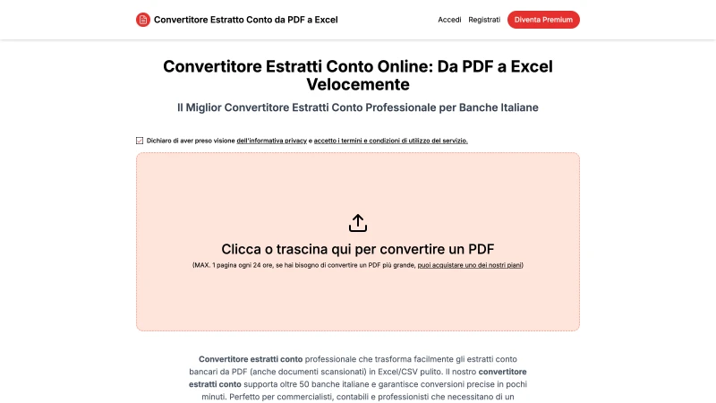 Trasforma PDF bancari in Excel/CSV in pochi minuti. Supporta 50+ banche italiane.